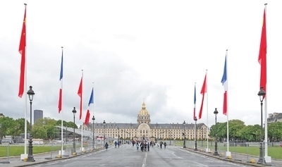 法國巴黎榮軍院前街道兩側懸掛中法兩國國旗。本報記者 王 遠攝