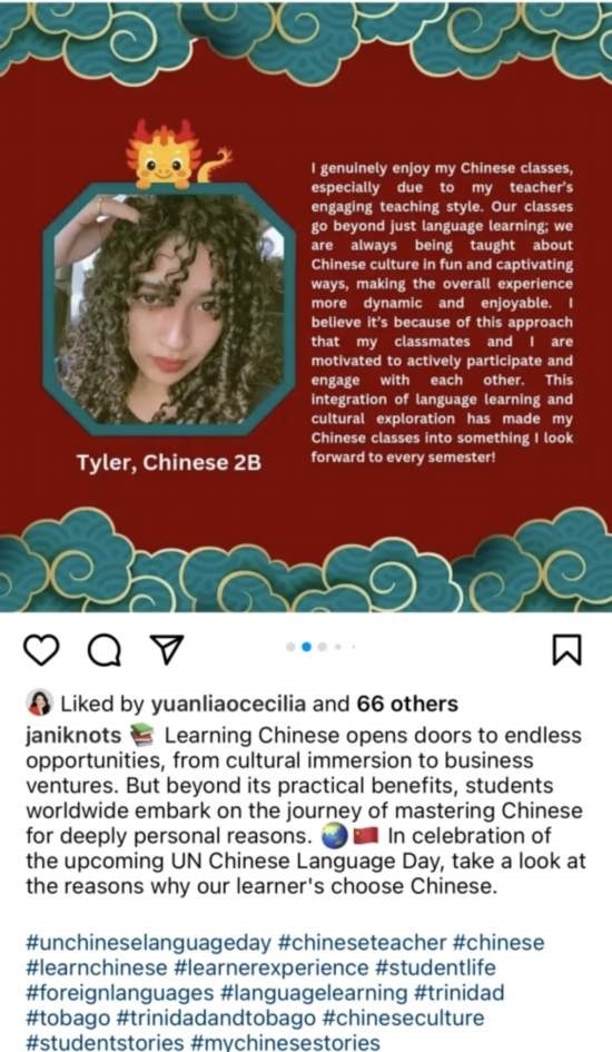第十五個聯(lián)合國中文日和第五個“國際中文日”舉辦期間,中外語言交流合作中心與中國日報網(wǎng)聯(lián)合發(fā)起 “國際中文日”系列線上活動,鼓勵大家講述、分享與中文相遇的精彩故事,半個月內(nèi)活動參與者覆蓋全球五大洲近70個國家和地區(qū),包括英國、意大利、澳大利亞、美國、巴西、日本、韓國、泰國、老撾、迪拜、喀麥隆等,作品超2000件,閱讀量超1000萬,在中國和其他國家主流社交媒體平臺掀起“中文日”熱潮,吸引了海內(nèi)外網(wǎng)友的廣泛關(guān)注。