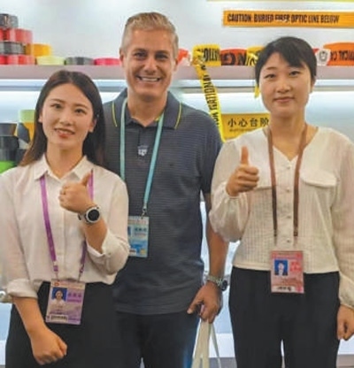 梅洛(中)在第135屆廣交會(huì)現(xiàn)場(chǎng)。受訪者供圖