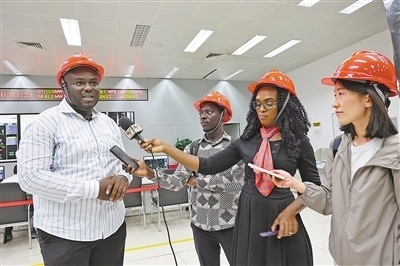 中加記者在深能安所固電力(加納)有限公司中控室采訪加方工程師。本報(bào)記者 孟祥麟攝