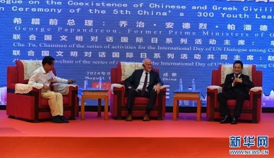 聯(lián)合國文明對話國際日系列活動(dòng)“中希文明交流互鑒對話”近日在四川省成都市“中華雷鋒志愿者小鎮(zhèn)”舉行。希臘前總理喬治·帕潘德里歐,聯(lián)合國藝術(shù)基金會主席、“2024中華雷鋒志愿者特別行動(dòng)計(jì)劃”負(fù)責(zé)人車夫出席并開展對話。