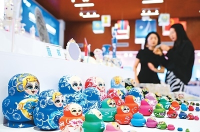 在位于山東青島的中國(guó)傳化(上合)國(guó)際物流港展廳,來(lái)自上合國(guó)家的特色商品在展出銷售。新華社記者 李紫恒攝