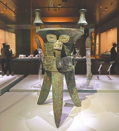 殷墟位于河南安陽市西北郊,是中國第一個有文獻記載并經(jīng)甲骨文及考古發(fā)掘所證實的商代晚期都城遺址,也是世界青銅文明的重要代表。殷墟博物館與殷墟宗廟宮殿區(qū)隔河相望,是全景式展現(xiàn)商文明的國家重大考古專題博物館。圖為殷墟博物館里展出的殷墟婦好墓出土的銅斝。人民網(wǎng)俄文專家 葉列娜·達維多娃攝 殷墟博物館是一座歷史文化的寶庫。在這里,我近距離地觀察一件件青銅器,仿佛看到其上閃爍著的中國古人智慧的火花;我端詳一片片的甲骨,試圖解讀那些古老的文字,仿佛在與中國古人跨越時空對話。在這里,我看到了考古學家如何不遺余力地保護歷史,也觀察到年輕的甲骨文愛好者們不斷用新鮮創(chuàng)意為文物保護注入新的生命力,這份傳承讓我深受觸動。
