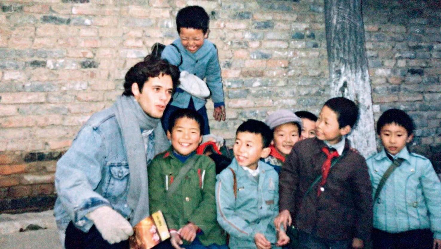 上世紀80年代,林登(左一)第一次來中國,與中國孩子們在一起。
