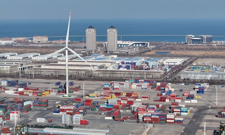這是天津自貿(mào)試驗(yàn)區(qū)東疆片區(qū)一景(2024年3月20日攝,無人機(jī)照片)。新華社記者 趙子碩 攝