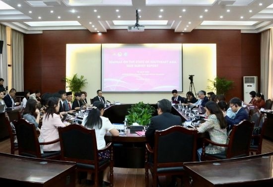 2025年4月16日,中國(guó)-東盟中心與廣西民族大學(xué)在南寧共同舉辦研討會(huì),結(jié)合新加坡尤索夫·伊薩東南亞研究院日前發(fā)布的《東南亞態(tài)勢(shì)2025調(diào)查報(bào)告》,就中國(guó)東盟關(guān)系及美加升關(guān)稅對(duì)地區(qū)影響進(jìn)行深入討論。來(lái)自中國(guó)和新加坡、泰國(guó)、文萊、馬來(lái)西亞、印度尼西亞、越南的學(xué)者參加研討,泰國(guó)、柬埔寨、馬來(lái)西亞、緬甸駐南寧總領(lǐng)事和越南駐南寧領(lǐng)事等出席研討會(huì)。