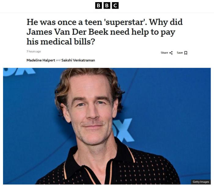 中新網(wǎng)2月14日電 據(jù)英國廣播公司(BBC)報(bào)道,美國演員詹姆斯·范德比克在20世紀(jì)90年代和21世紀(jì)初成名。憑借在青春成長劇《戀愛時(shí)代》中的表現(xiàn),范德比克走上了一些最熱門的紅毯,甚至被稱為“新晉超級巨星”。但晚年遭遇不幸時(shí),他的家人不得不依靠朋友和粉絲的善意來獲得經(jīng)濟(jì)援助,這不僅揭示了許多演員岌岌可危的經(jīng)濟(jì)狀況,也揭示了數(shù)百萬普通美國人為支付醫(yī)療費(fèi)用而苦苦掙扎的困境。