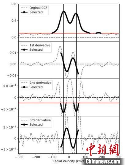 雙星系統(tǒng)中兩顆子星的視向速度變化?!⊙芯繄F(tuán)隊(duì) 供圖