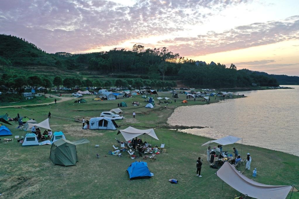 5月2日,游客在南寧市武鳴區(qū)淥學(xué)水庫(kù)露營(yíng)。新華社記者周華攝