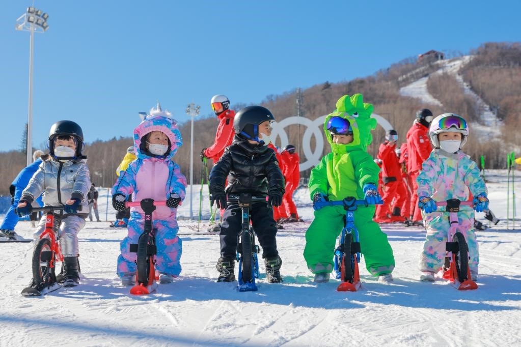 2021年11月17日,在長(zhǎng)白山國(guó)際度假區(qū)滑雪場(chǎng),小朋友們體驗(yàn)雪地平衡車。新華社發(fā)