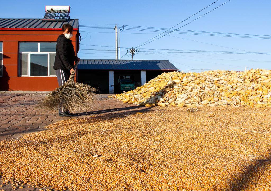 農(nóng)田中,馬達轟鳴、熱火朝天,大家正抓緊清理回收秸稈;各家場院里,玉米成堆、遍地金黃。農(nóng)民們談起今年的收成,滿臉喜悅。