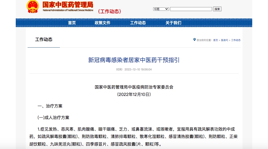國(guó)家中醫(yī)藥局中醫(yī)疫病專家委員會(huì)發(fā)布《新冠病毒感染者居家中醫(yī)藥干預(yù)指引》