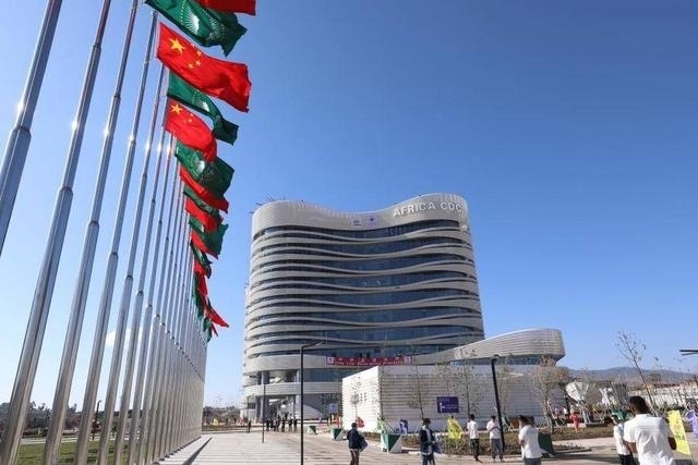 今年1月11日,在埃塞俄比亞首都亞的斯亞貝巴南郊,中國援建的非洲疾控中心總部附近車水馬龍,非盟會旗和中國國旗在藍天白云下迎風飄展,印有“中非友誼長存”的橫幅高掛在總部大樓外。當天,中國援非盟非洲疾病預防控制中心總部(一期)項目舉行了竣工儀式。