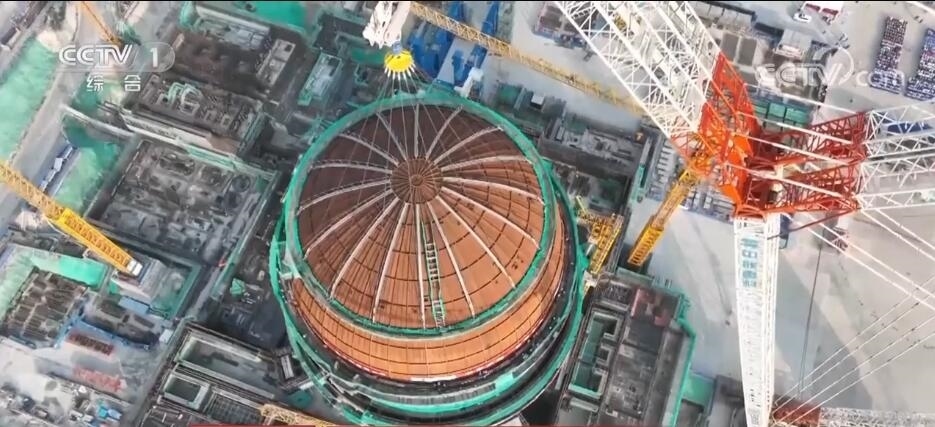 海南昌江:“華龍一號”核電3號機組內(nèi)穹頂?shù)跹b
