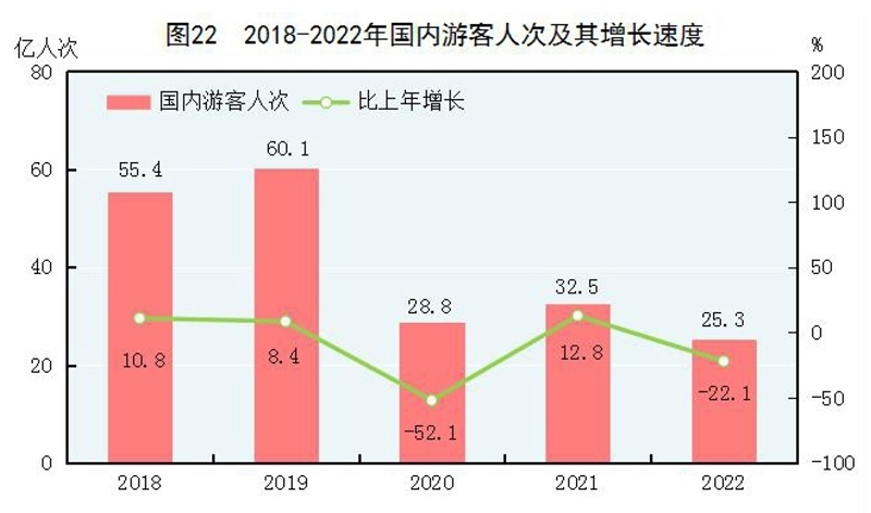 全年國內(nèi)游客25.3億人次,比上年下降22.1%。其中,城鎮(zhèn)居民游客19.3億人次,下降17.7%;農(nóng)村居民游客6.0億人次,下降33.5%。國內(nèi)旅游收入20444億元,下降30.0%。其中,城鎮(zhèn)居民游客花費16881億元,下降28.6%;農(nóng)村居民游客花費3563億元,下降35.8%。