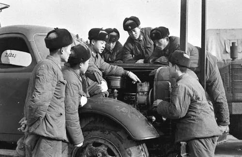 這是雷鋒(左三)向戰(zhàn)友傳授安全行車和節(jié)油的經(jīng)驗(資料照片)。新華社發(fā)
