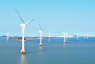 福建省福清市,興化灣海上風電場一角。 新華社記者 林善傳攝