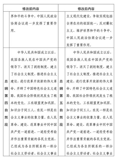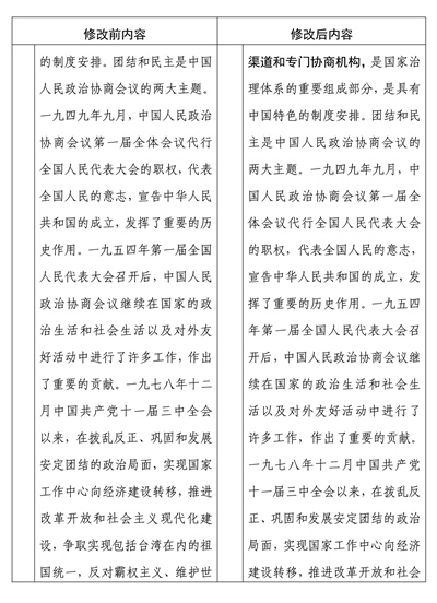 中國(guó)人民政治協(xié)商會(huì)議章程修改前后內(nèi)容對(duì)照表