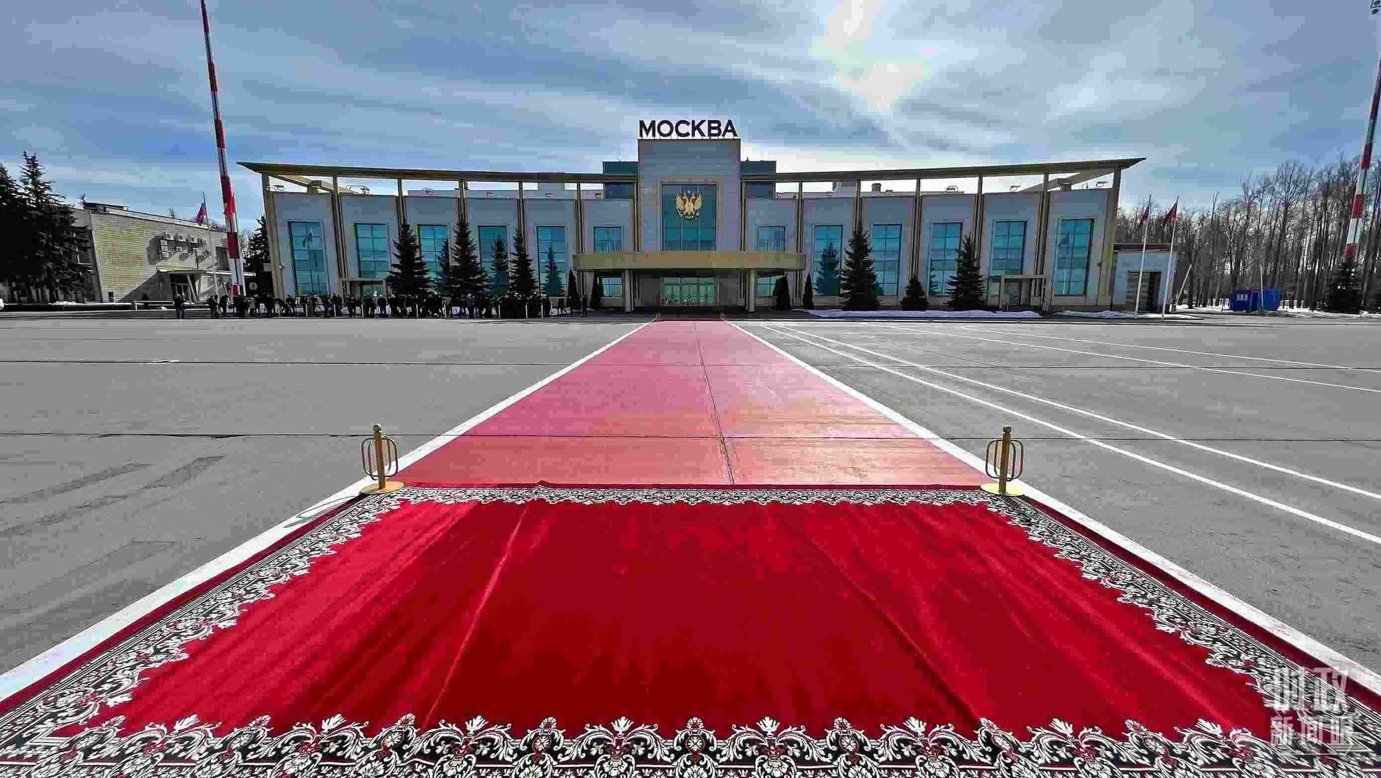 △迎賓儀式現(xiàn)場的紅毯。(總臺央視記者邢彬拍攝)