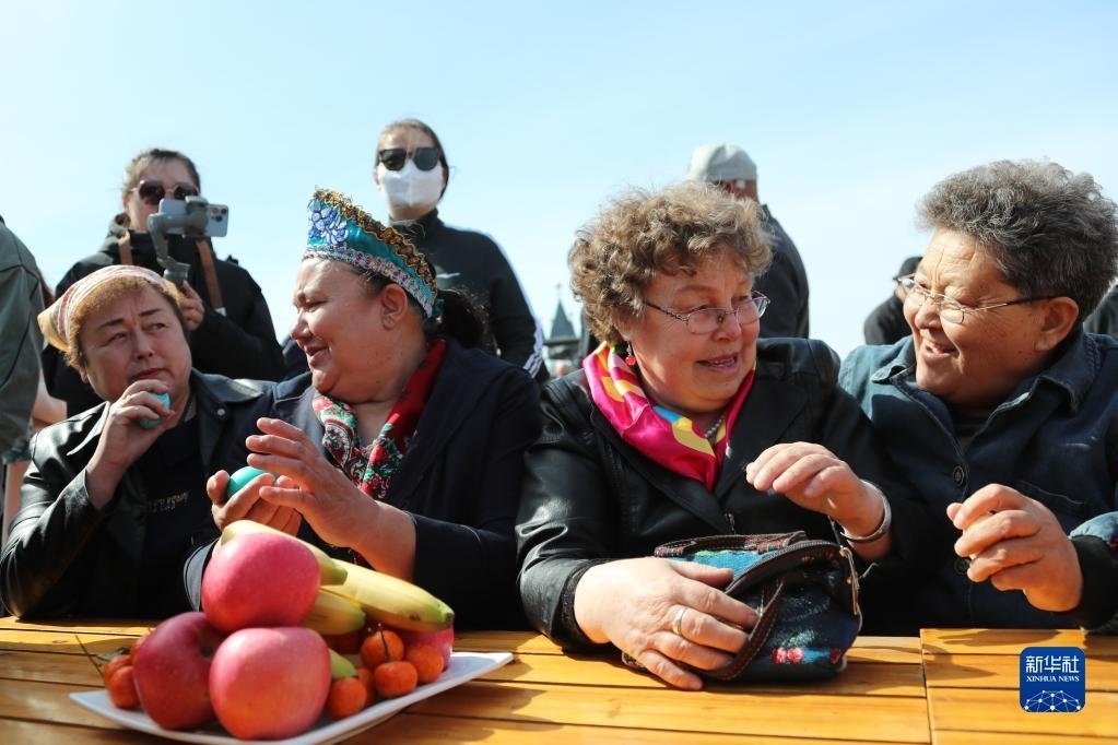 當(dāng)日,內(nèi)蒙古呼倫貝爾市額爾古納市恩和俄羅斯族民族鄉(xiāng)的俄羅斯族群眾穿著鮮艷的民族服飾,載歌載舞,歡度巴斯克節(jié)。已被列入國家級非物質(zhì)文化遺產(chǎn)名錄的巴斯克節(jié)是俄羅斯族一年中最隆重的節(jié)日,在為期一周的節(jié)日里,當(dāng)?shù)厝罕娖穱L美食、互相撞彩蛋、參加拔河、搶棍等活動。