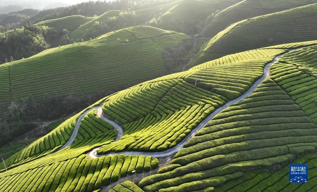 4月16日,茶農(nóng)在鶴峰縣走馬鎮(zhèn)木耳山茶園采茶。