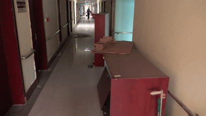 工作組在位于石家莊市新華區(qū)的河北仁愛醫(yī)養(yǎng)服務(wù)集團二樓,同樣發(fā)現(xiàn)一處被封堵的安全出口。且旁邊的告知函上已寫明,該處自2023年4月20日起進行裝修改造,工期為100天左右。
