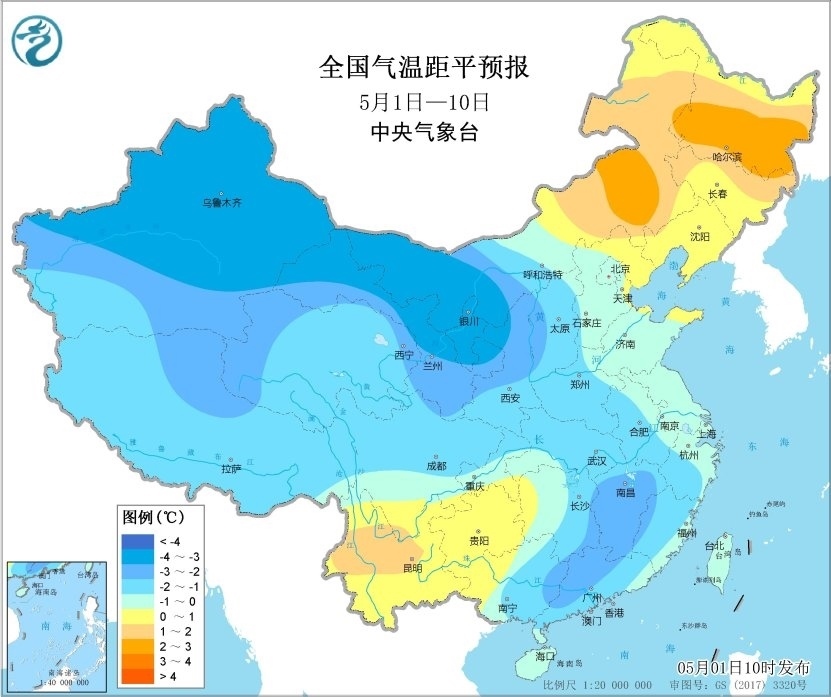 未來10天,除內(nèi)蒙古中東部、東北地區(qū)及云貴高原平均氣溫較常年同期偏高1℃左右外,全國其余大部分地區(qū)平均氣溫較常年同期偏低1~2℃,其中新疆、甘肅、內(nèi)蒙古西部等地的部分地區(qū)偏低3℃以上。