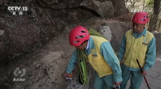 黃山放繩工李培生:“當時下去肯定怕,翻過欄桿一剎那,回過頭看到懸崖下面的時候,那是萬丈懸崖,心里也沒有底。”