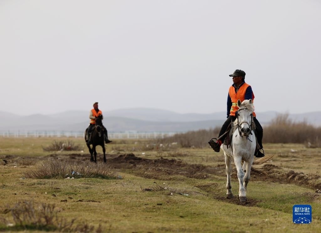 5月2日,河北省承德市豐寧滿族自治縣大灘鎮(zhèn)扎拉營村的護林員在海留圖國家濕地公園巡邏。   新華社記者 邢廣利 攝