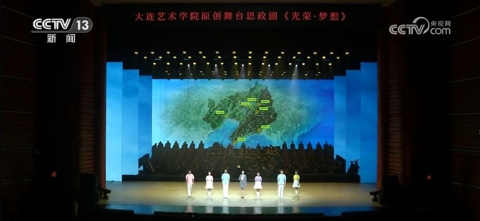 在遼寧,由大連藝術(shù)學(xué)院原創(chuàng)的大型舞臺(tái)劇《光榮·夢(mèng)想》在大連、沈陽等地上演。舞臺(tái)劇以“九一八”事變?yōu)闅v史背景起點(diǎn),生動(dòng)再現(xiàn)了東北人民抗日、解放戰(zhàn)爭等紅色故事。近千名參演師生融合交響樂、朗誦、舞蹈等多種藝術(shù)表現(xiàn)形式,引起現(xiàn)場觀眾強(qiáng)烈共鳴。