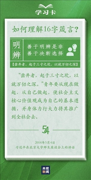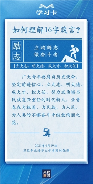 青春,是人生最美的時光。青年,是國家的未來和民族的希望。每每與青年對話,習近平總書記無不囑托青年“立大志”“堅定理想信念”“擔當復興大任”,言之諄諄,意之殷殷。對于新時代青年如何走好人生路,習近平總書記2018年提出十六字箴言,字短意長。今天,一起學習↓