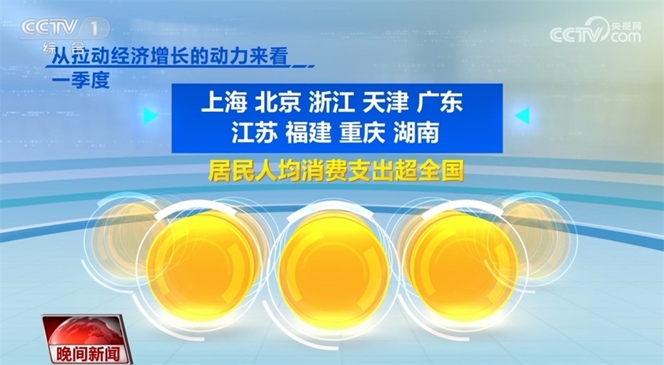此外,各地經(jīng)濟(jì)發(fā)展也呈現(xiàn)回升向好態(tài)勢(shì)。目前,全國(guó)31個(gè)?。▍^(qū)、市),已經(jīng)全部公布一季度的經(jīng)濟(jì)運(yùn)行數(shù)據(jù)。從GDP增速來(lái)看,31個(gè)?。▍^(qū)、市)中有23個(gè)省份跑贏全國(guó)一季度GDP平均增速4.5%,從地區(qū)GDP總量看,有12個(gè)省份超1萬(wàn)億,廣東超過(guò)了3萬(wàn)億。從拉動(dòng)經(jīng)濟(jì)增長(zhǎng)的動(dòng)力來(lái)看,一季度,上海、北京、浙江、天津、廣東、江蘇、福建、重慶、湖南9省份,居民人均消費(fèi)支出超全國(guó)。