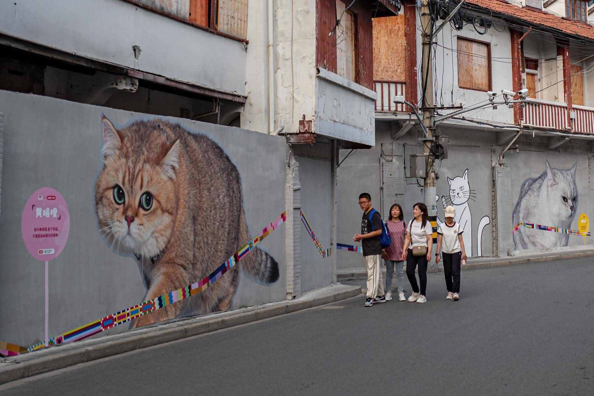 2023年5月4日,上海,方浜中路老街被打造成“外灘貓街”。視覺中國