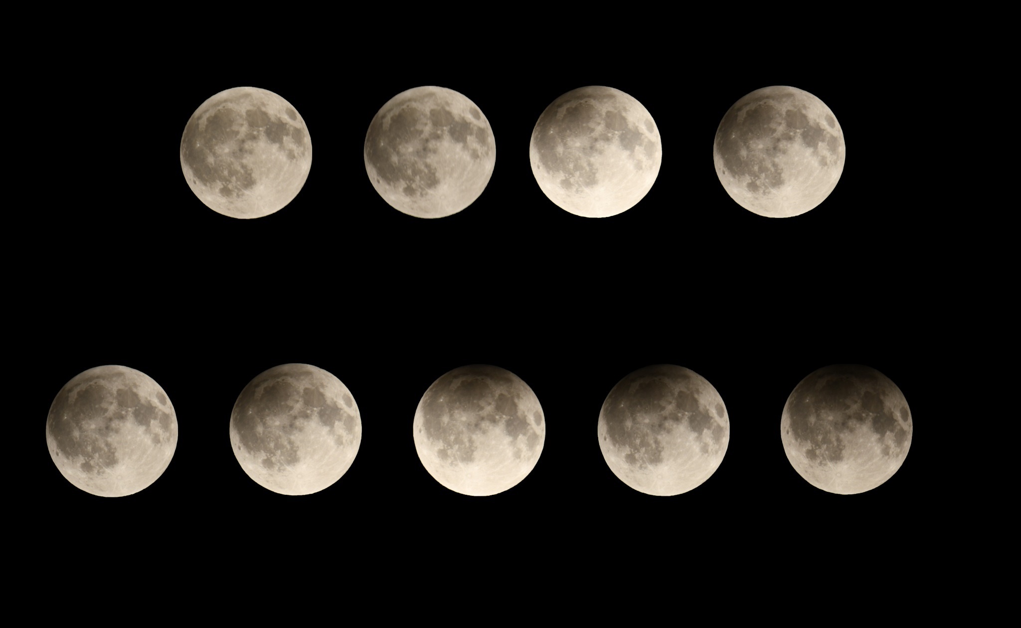5月5日,2023年首場月食登場,這是一次半影月食,月亮的“臉色”從亮變暗,再從暗變亮,我國可見全過程(拼版照片)。視覺中國