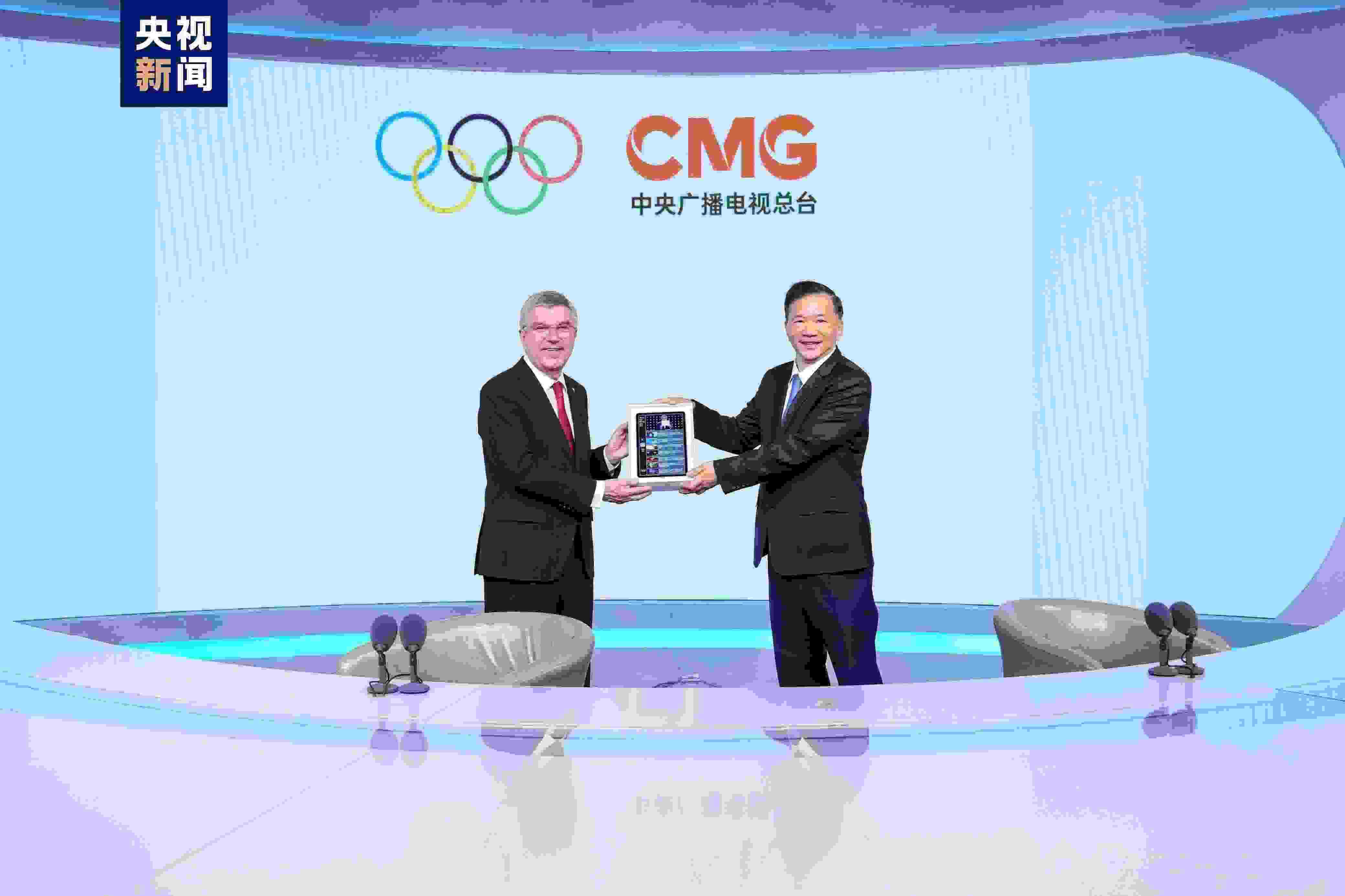 5月6日,國際奧委會主席巴赫到中央廣播電視總臺參觀訪問,并就奧運轉(zhuǎn)播報道、新技術研發(fā)應用、奧林匹克文化傳播等話題與中宣部副部長、中央廣播電視總臺臺長慎海雄深入交流??偱_副臺長邢博,國際奧委會委員于再清、李玲蔚、張虹,總臺編務會議成員薛繼軍、范昀等陪同參觀。雙方還見證了中央廣播電視總臺受邀成為巴黎奧運會主轉(zhuǎn)播機構的簽約儀式。