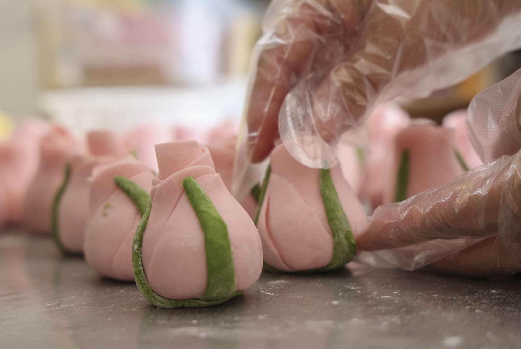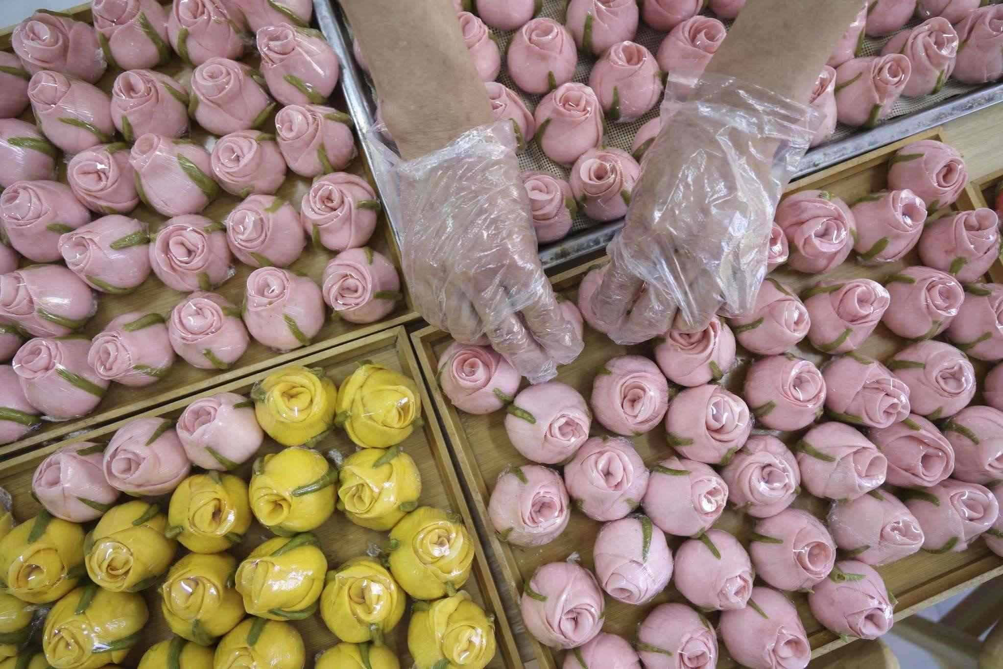 2023年5月12日,山東臨沂,母親節(jié)來臨之際,面點師們制作出色彩鮮艷、軟糯香甜的花饃,受到廣大顧客青睞。視覺中國