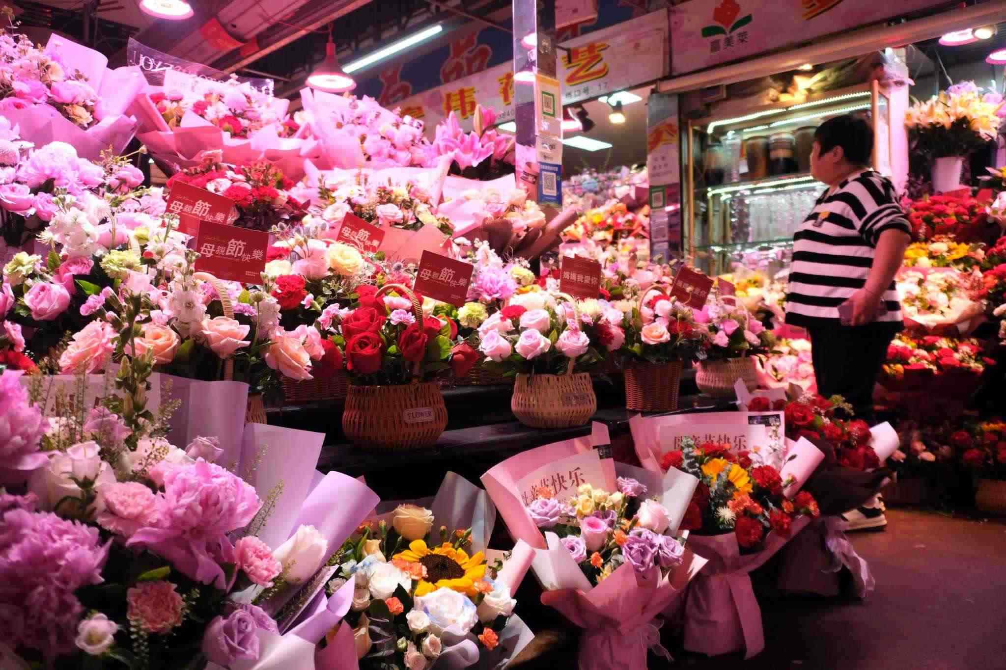 2023年5月13日,沈陽,母親節(jié)到來之際,和平區(qū)中山公園旁鮮花市場,一片忙碌景象。視覺中國
