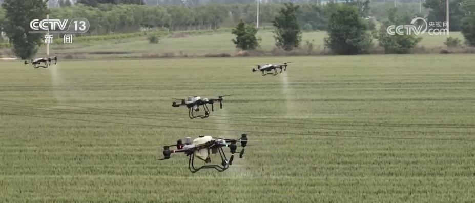 在山西運(yùn)城,439萬(wàn)畝小麥從北到南陸續(xù)進(jìn)入揚(yáng)花灌漿關(guān)鍵期,農(nóng)技人員在田間地頭給予農(nóng)戶技術(shù)指導(dǎo)。在運(yùn)城河津市村民馬關(guān)發(fā)的小麥田里,10架無(wú)人機(jī)正在麥田上方進(jìn)行噴灑作業(yè)。