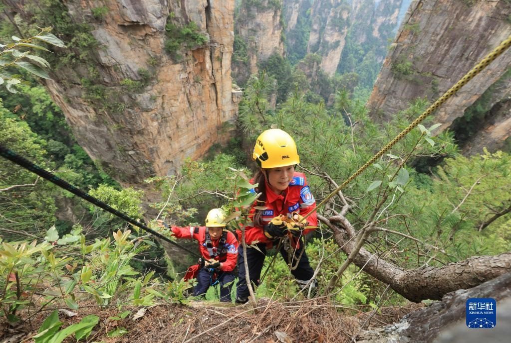 當(dāng)日,湖南省張家界市武陵源區(qū)山地應(yīng)急救援隊(duì)在天子山開(kāi)展繩索救援適應(yīng)性訓(xùn)練的同時(shí),義務(wù)撿拾叢林中的飲料瓶、塑料袋等垃圾,以實(shí)際行動(dòng)保護(hù)景區(qū)自然生態(tài)環(huán)境。該救援隊(duì)自2020年成立以來(lái),借助專業(yè)技術(shù)力量義務(wù)為各景區(qū)提供應(yīng)急救援服務(wù),并定期開(kāi)展撿拾垃圾等公益活動(dòng)。   新華社發(fā)(吳勇兵攝)