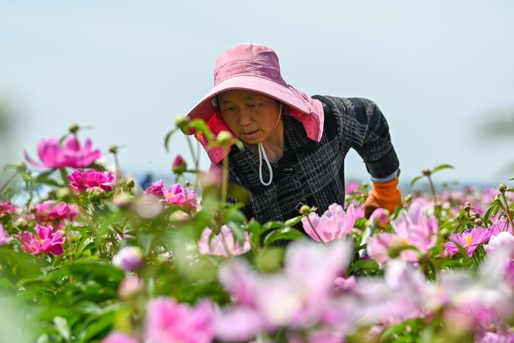 “花經(jīng)濟(jì)”持續(xù)升溫下,越來(lái)越多農(nóng)民走出家門(mén),成為產(chǎn)業(yè)工人。入夏,走進(jìn)伊寧縣天山花海景區(qū),連片芍藥、亞麻花爭(zhēng)相盛開(kāi),工人正在田間加緊除草、養(yǎng)護(hù)。