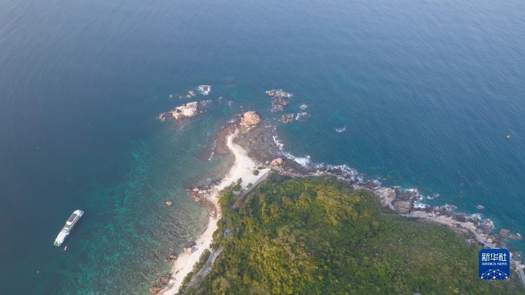 這是5月18日拍攝的海南三亞蜈支洲島海域海洋牧場(無人機(jī)照片)。   新華社記者 樊雨晴 攝