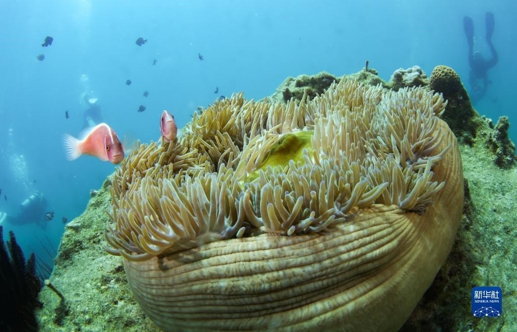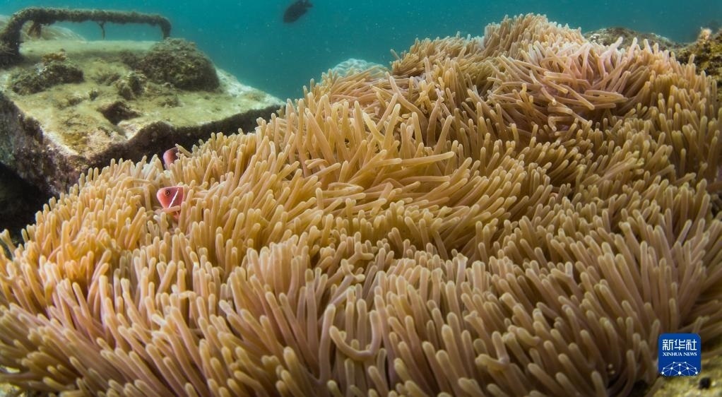 這是在蜈支洲島海域海洋牧場拍攝的小丑魚和???月18日攝)。   新華社記者 楊冠宇 攝