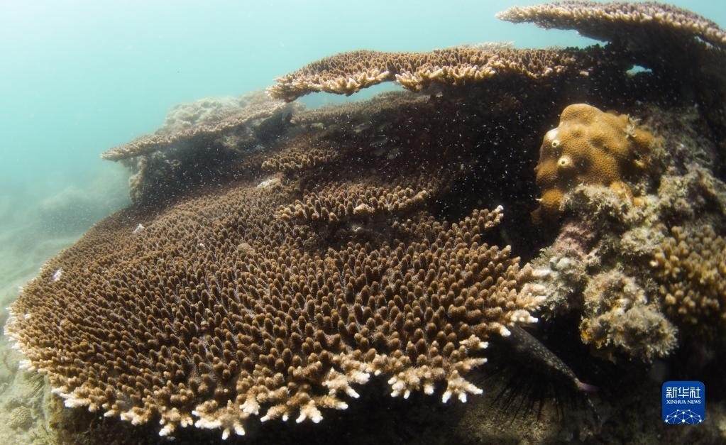 這是在蜈支洲島海域海洋牧場拍攝的風(fēng)信子鹿角珊瑚(5月17日攝)。   新華社記者 楊冠宇 攝