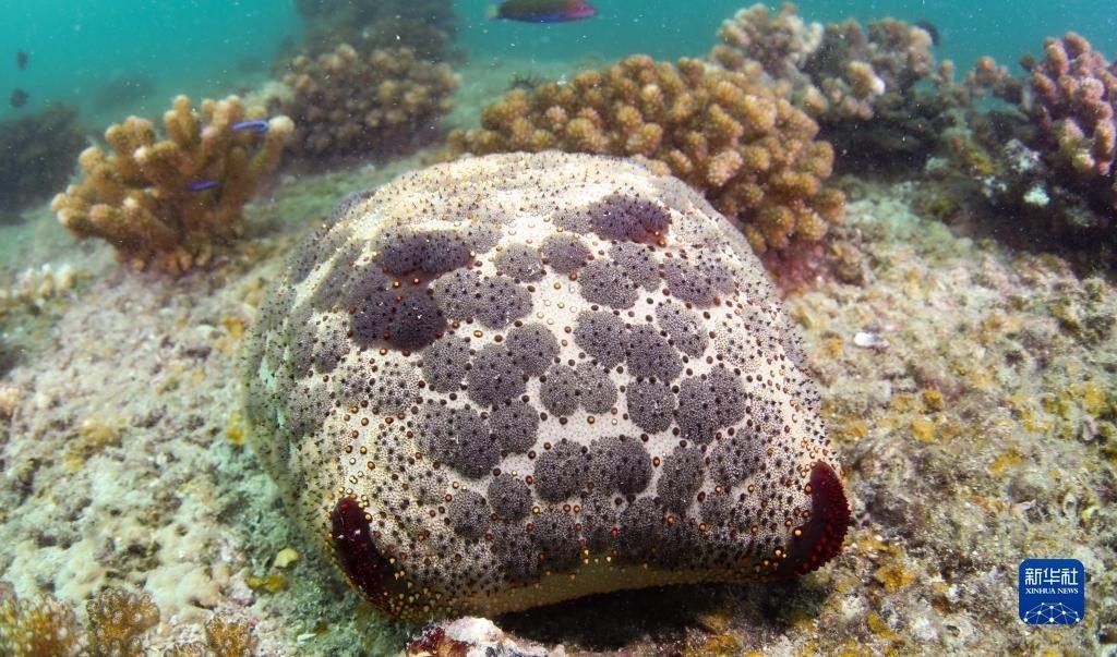 這是在蜈支洲島海域海洋牧場拍攝的面包海星(5月16日攝)。   新華社記者 楊冠宇 攝