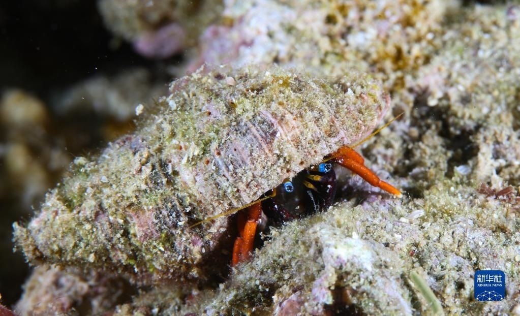 這是在蜈支洲島海域海洋牧場拍攝的寄居蟹(2021年5月24日攝)。   新華社記者 楊冠宇 攝