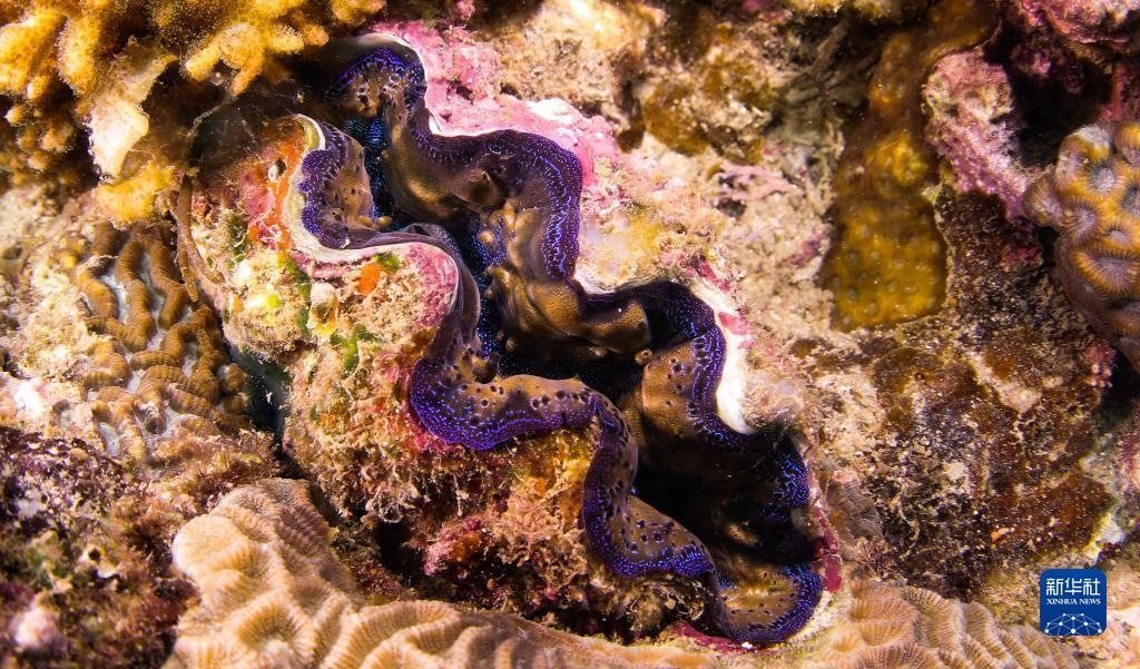 這是在蜈支洲島海域海洋牧場拍攝的硨磲(5月17日攝)。   新華社記者 楊冠宇 攝
