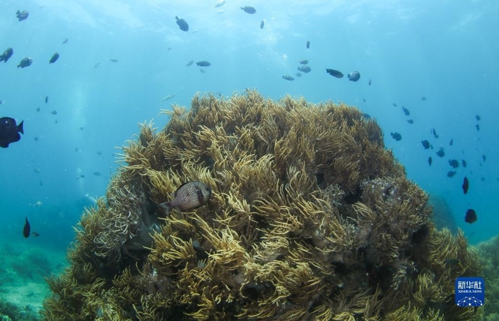 目前,蜈支洲島海域已移植珊瑚3.5萬多株,海洋生態(tài)環(huán)境的不斷改善,也讓種類繁多、形態(tài)各異的海洋生物在蜈支洲島海域海洋牧場聚集、繁殖、生長,共同構(gòu)成一個多姿多彩的水下世界。   新華社記者 楊冠宇 攝
