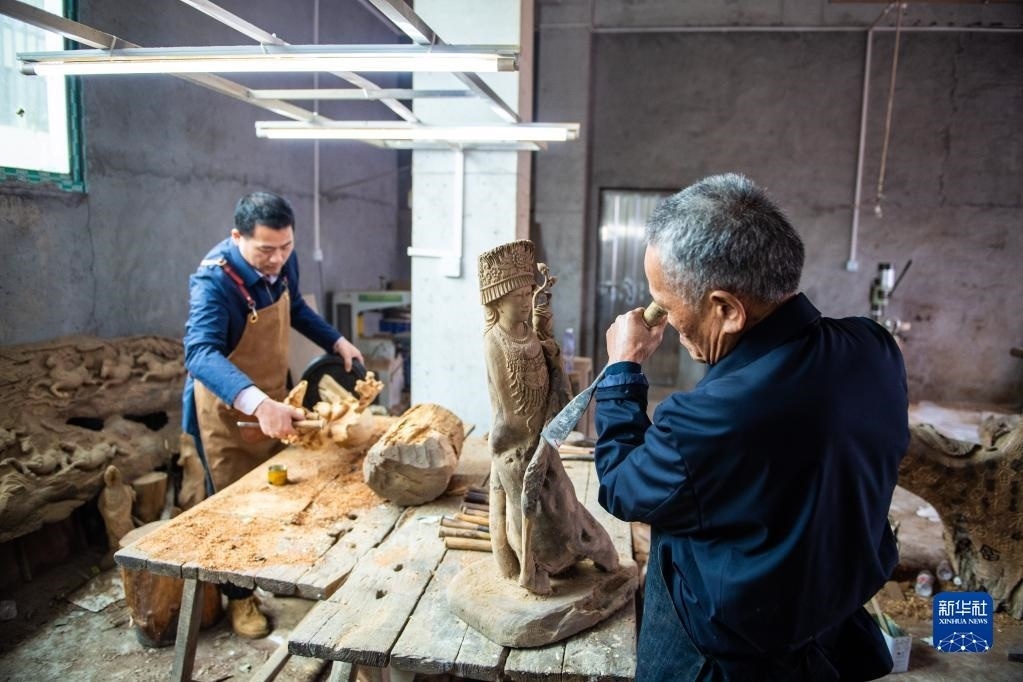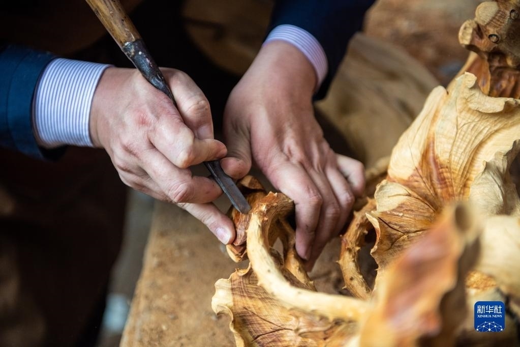 洞口木雕已被正式列入湖南省省級(jí)非物質(zhì)文化遺產(chǎn)名錄,木雕產(chǎn)品遠(yuǎn)銷70多個(gè)國家和地區(qū)。新華社記者 陳思汗 攝
