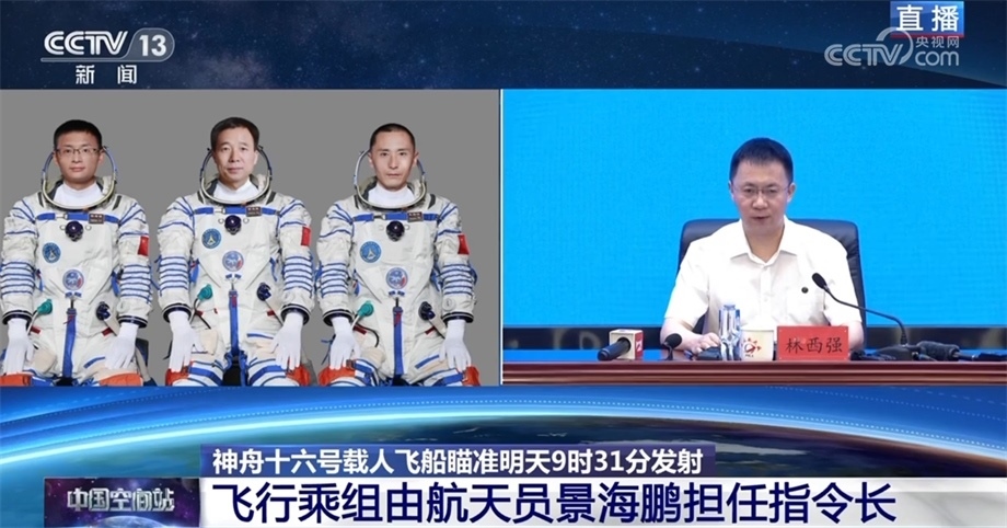 央視網(wǎng)消息:昨天(5月28日),任務(wù)總指揮部召開會(huì)議,研究確定了神舟十六號(hào)載人飛船發(fā)射計(jì)劃和航天員飛行乘組。今天,我們邀請(qǐng)到中國(guó)載人航天工程辦公室副主任、工程新聞發(fā)言人林西強(qiáng)先生給大家介紹情況,并回答各位感興趣的問題。