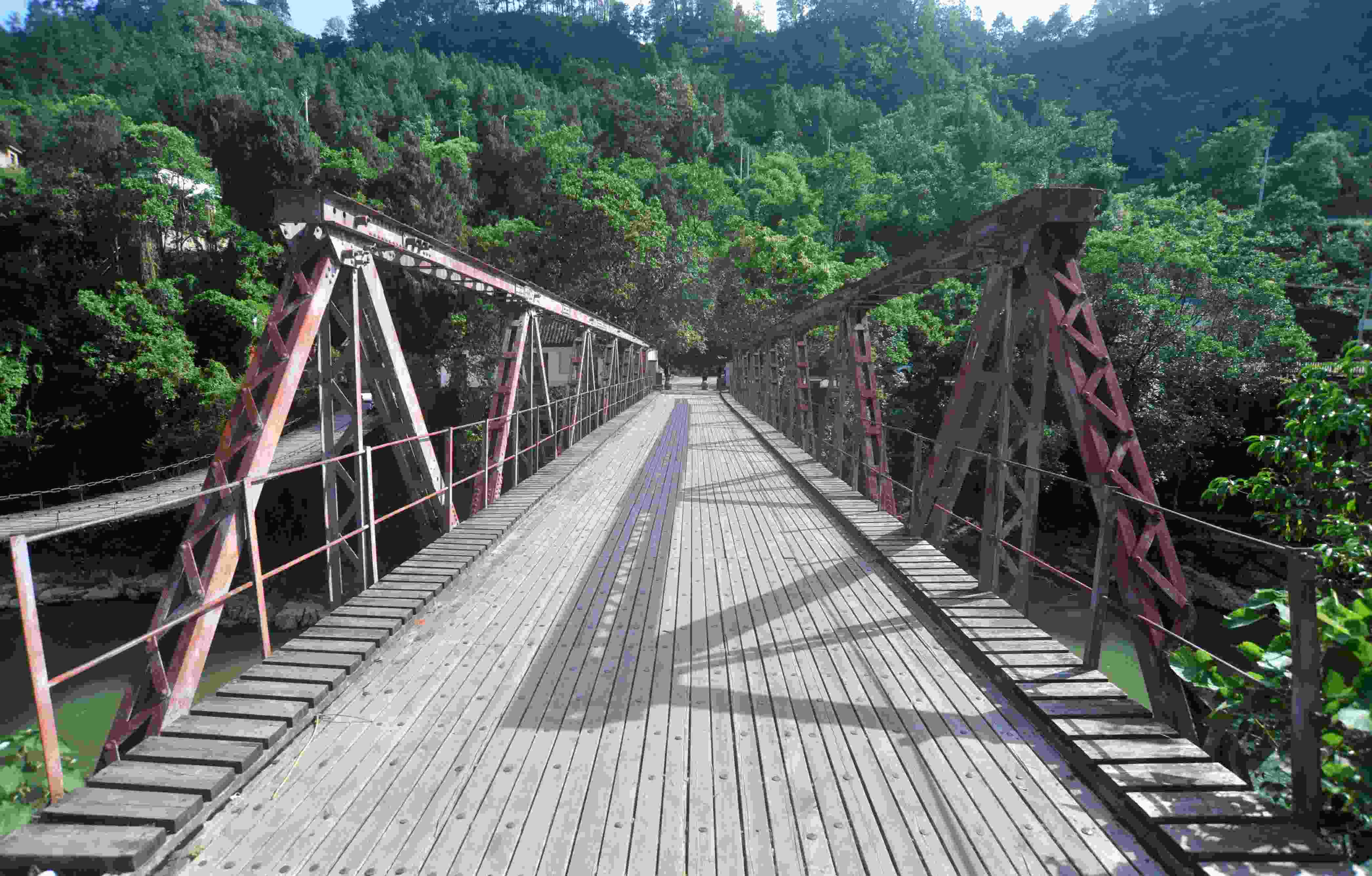 “三朝橋”坐落在貴州黔東南苗族侗族自治州黃平縣重安鎮(zhèn)重安江江面上,三橋間距不足50米。最南邊的鐵索橋修建于清同治十二年,橋長36.5米,有鐵索19根。中間橋修建于1938年抗戰(zhàn)時期,為石墩鋼梁構結公路橋,設計者是茅以升。第三座橋為鋼筋混凝土曲拱橋,1994年始建,目前仍正常使用?!叭瘶颉笔琴F州交通歷史變遷的見證,有“中國橋梁博物館”之稱。 (寧堅 趙軍)